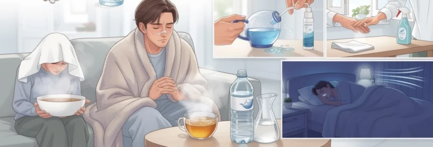 Au-delà des compléments et des plantes, il existe une catégorie de gestes souvent sous-estimés pour soigner un rhume rapidement : les méthodes mécaniques de décongestion. Elles n’agissent pas directement sur le virus, mais facilitent l’élimination physique des particules virales et des sécrétions chargées de débris cellulaires. En d’autres termes, vous aidez votre corps à « faire le ménage » plus efficacement dans les voies respiratoires supérieures. Un nez bien dégagé permet de mieux respirer, de mieux dormir et réduit le risque de complications comme l’otite ou la sinusite, particulièrement chez les enfants.