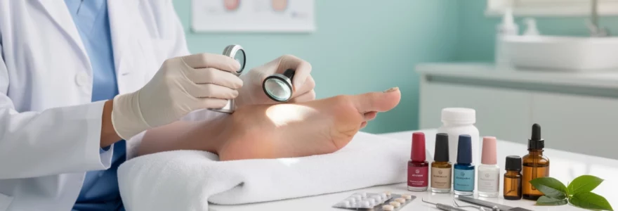 Les principales molécules utilisées en systémique sont la terbinafine, l’itraconazole et, dans certains cas spécifiques, le fluconazole. Leur efficacité sur l’onychomycose plantaire a été largement documentée, avec des taux de guérison mycologique dépassant souvent 70% quand les schémas thérapeutiques sont correctement suivis. En contrepartie, ces médicaments exigent parfois un bilan hépatique préalable, un suivi biologique régulier et une bonne information du patient sur les signes d’alerte à surveiller. Avant de débuter un tel traitement, un prélèvement mycologique positif est fortement recommandé afin de confirmer le diagnostic et de cibler le champignon en cause.