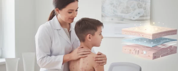 La varicelle laisse fréquemment des traces persistantes sur la peau, particulièrement lorsque le processus de guérison n’est pas optimal. Ces cicatrices atrophiques, caractérisées par leur aspect en creux, résultent d’une altération de la synthèse collagénique au niveau du derme papillaire….